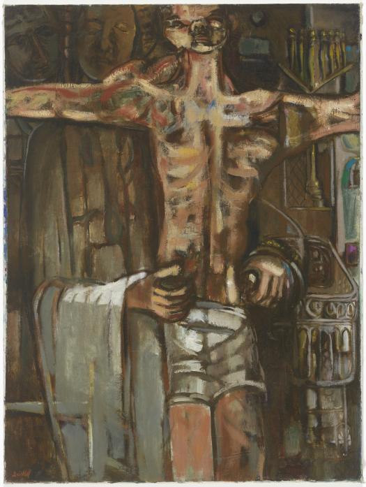 This is the 1956 painting titled, “Behold Thy Son,” by David C. Driskell. The title of the painting comes from a Bible quote, from John, Chapter 19, verse 26. “When Jesus therefore saw his mother, and the disciple standing by, whom he loved, he saith unto his mother, ‘Woman, behold thy son!’” This work was created as a tribute to Emmitt Till, the 14-year-old African American boy who was brutally tortured and murdered less than a year earlier. It addresses a mother’s heartbreaking loss of her son.