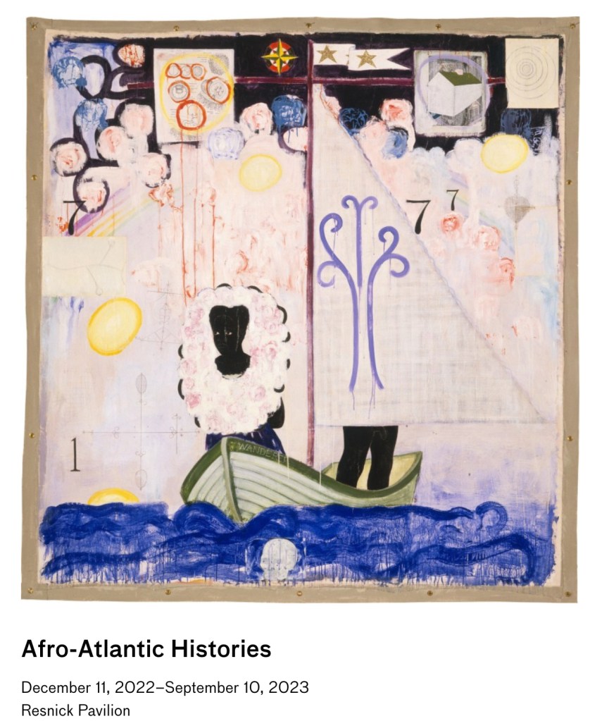 According to the website: “The exhibition is organized around six groupings: Maps and Margins, Enslavements and Emancipations, Everyday Lives, Rites and Rhythms, Portraits, and Resistances and Activism. Each section considers the critical impact of the African diaspora reflected in historic and contemporary artworks.” The exhibition opened in December 2022 and runs until September 10, 2023.